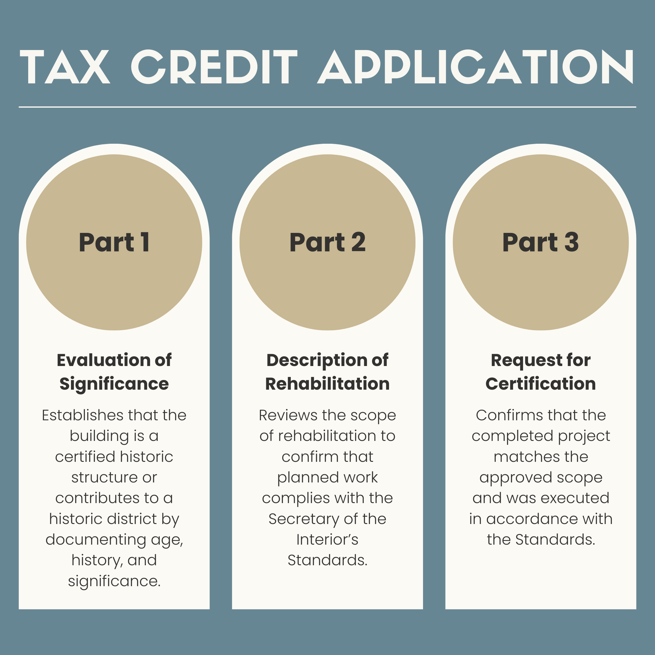 Tax credits are documentation-heavy because they are compliance programs. NPS requires photos keyed to plans and the application narrative, along with drawings and clear descriptions of proposed work.