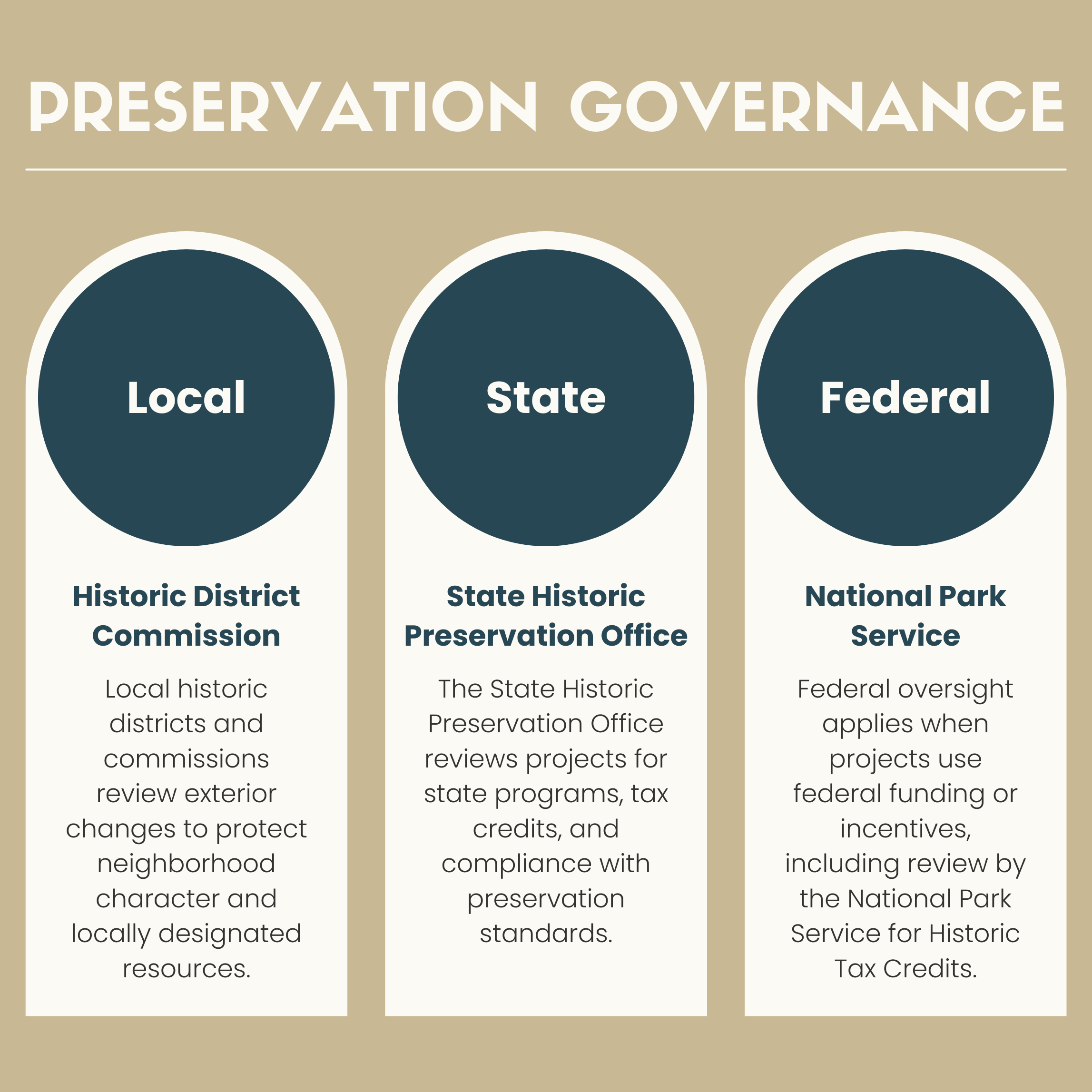 How preservation applies at the local, state, and federal levels